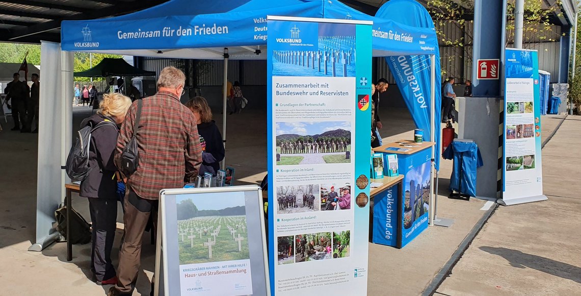 Bei gleich zwei Veranstaltungen der Bundeswehr in Thüringen am vergangenen Wochenende kam der neue Info-Stand des Volksbundes bei uns zum Einsatz. Beim Gästeschießen um den ,,Pokal des Kommandeurs Landeskommando Thüringen“ am Samstag, 10. September 2022 auf dem Standortübungsplatz Ohrdruf und im Gadolla-Saal der Friedensteinkaserne Gotha sowie zum „Tag der offenen Tür“ in der Werratal-Kaserne in Bad Salzungen am Sonntag, 11. September 2022.