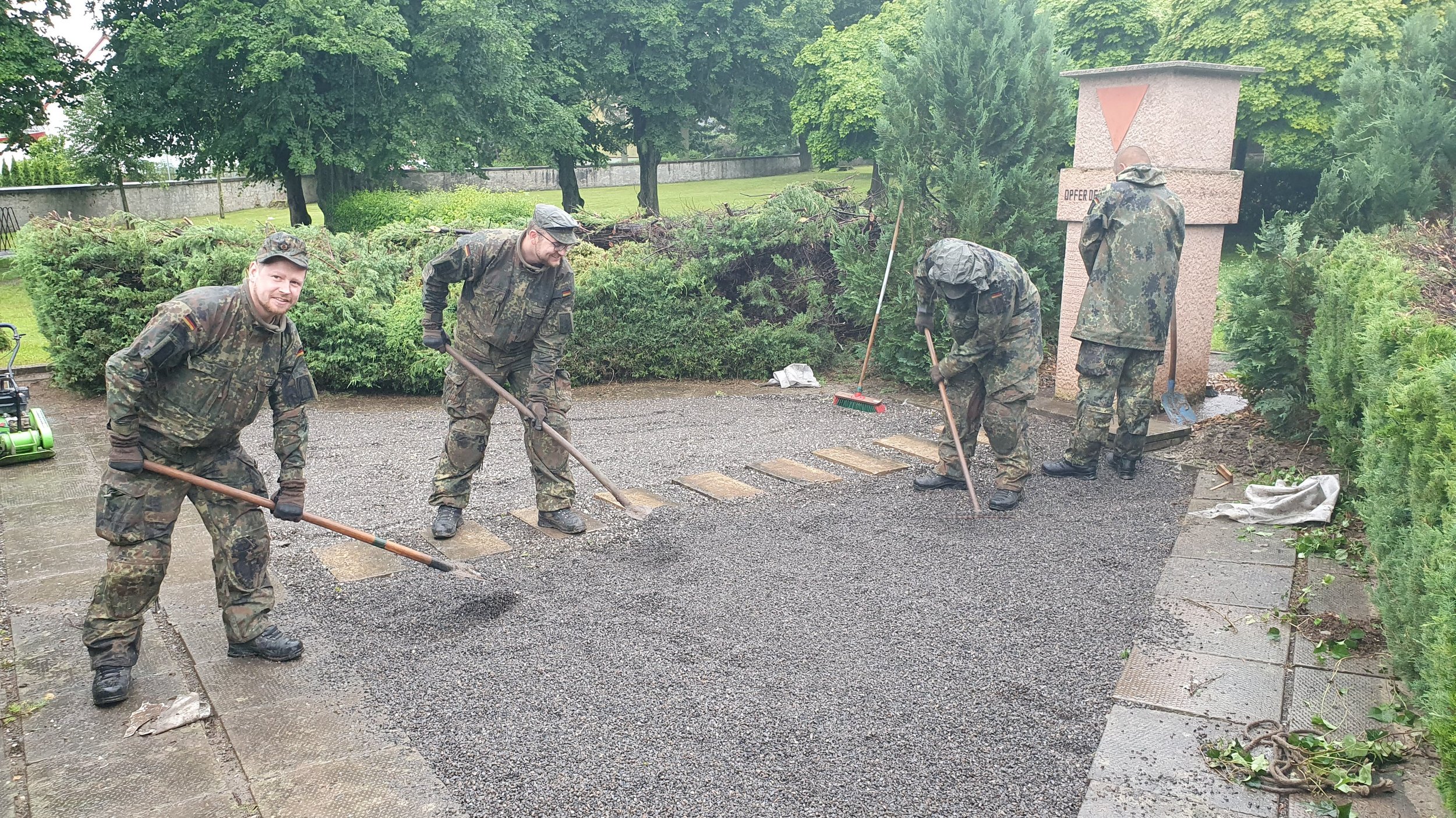 Zum ersten Mal hat eine Thüringer Bundeswehreinheit eine Woche lang auf einer Kriegsgräberstätte und an Gefallenendenkmalen in Thüringen einen freiwilligen Pflegeeinsatz durchgeführt.