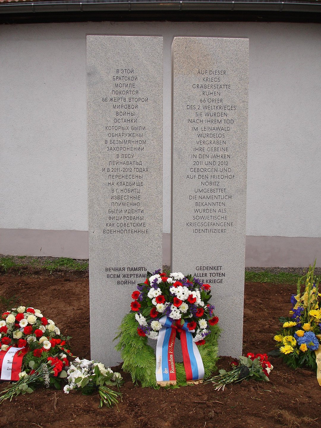 Im Mai 2011 war nach Hinweisen eines Heimatforschers durch einen Reporter der BILD im Leinawald ein menschlicher Oberschenkelknochen gefunden worden. Der Fund ließ auf sowjetische Kriegsgefangene schließen, da sich in besagtem Gelände ein Lager für meist sowjetische Kriegsgefangene befand. Daraufhin wurde der Volksbund Deutsche Kriegsgräberfürsorge e.V. hinzugezogen und um Unterstützung gebeten.