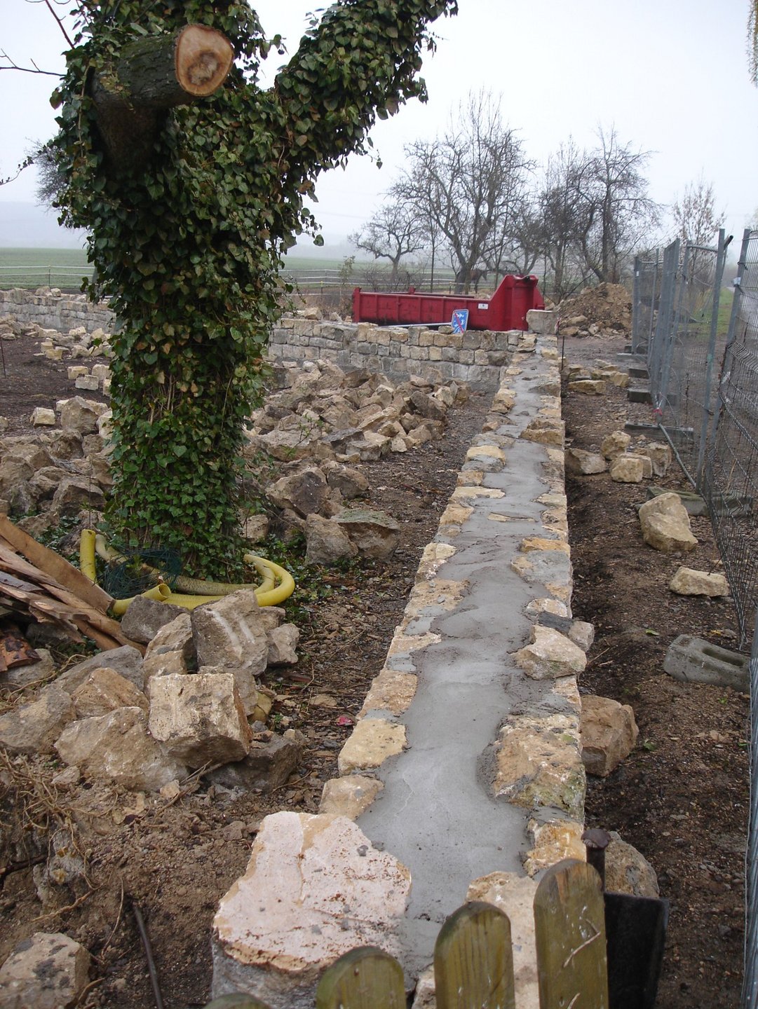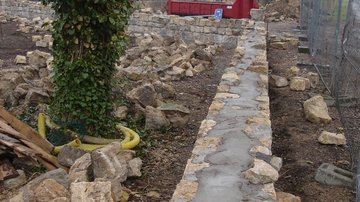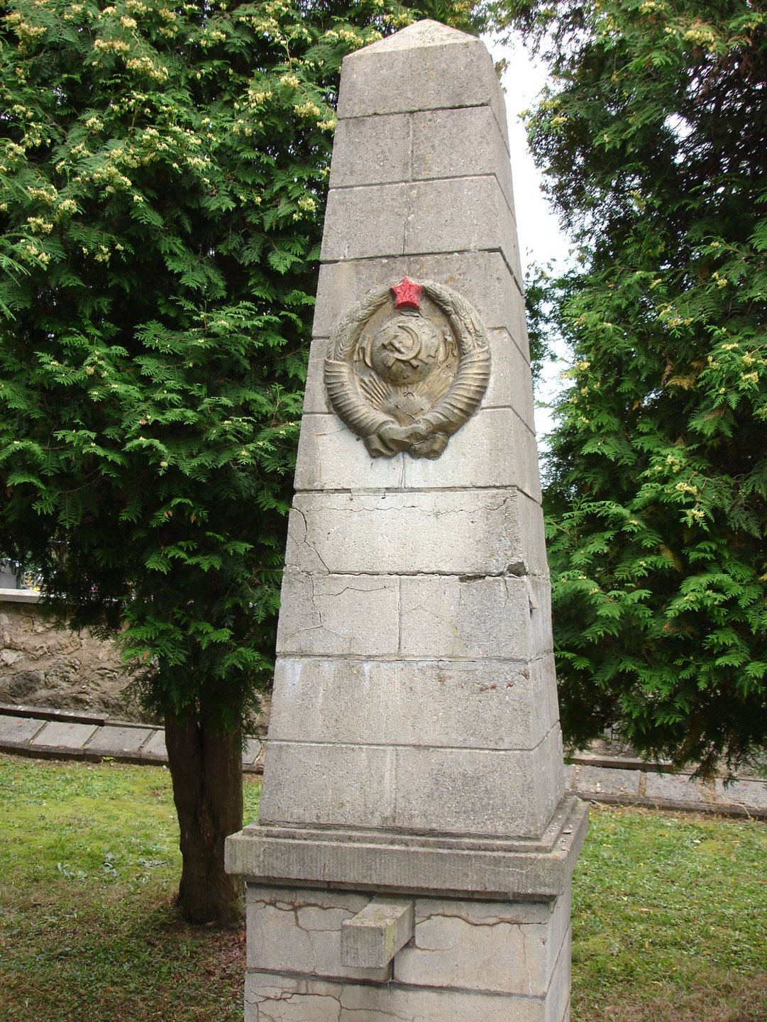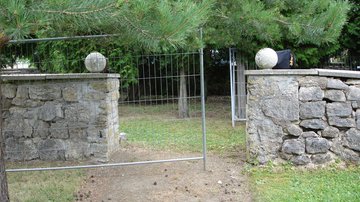 Der in der Mitte des Gräberfeldes stehende Obelisk wurde neu aufgebaut, die überdimensionierte Mauer zum zivilen Friedhof durch eine Hecke ersetzt und die übrigen Steine für den Neubau verwendet.